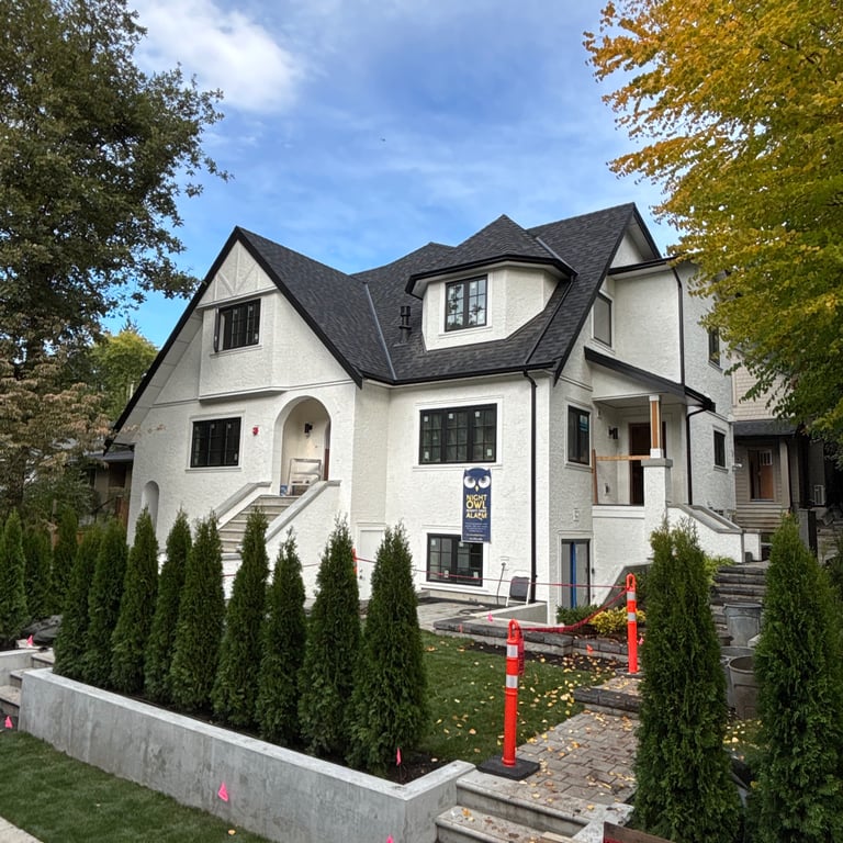 Another multiplex, where we maximize the use of land to build a triplex, a detached home in the back along with 4 garages. The original house was raised and moved to accomodate for more efficient use of the property and allow for higher ceilings in the finished product.
